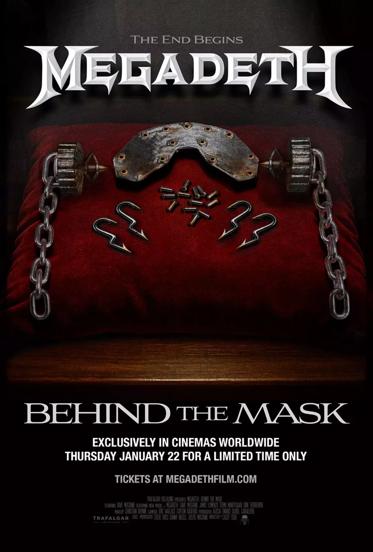 MEGADETH: BEHIND THE MASK is a cinematic legacy event in which Dave Mustaine pulls back the curtain on 40 years of MEGADETH, sharing untold stories of the band’s incredible past, and the creative fire that drives the band.