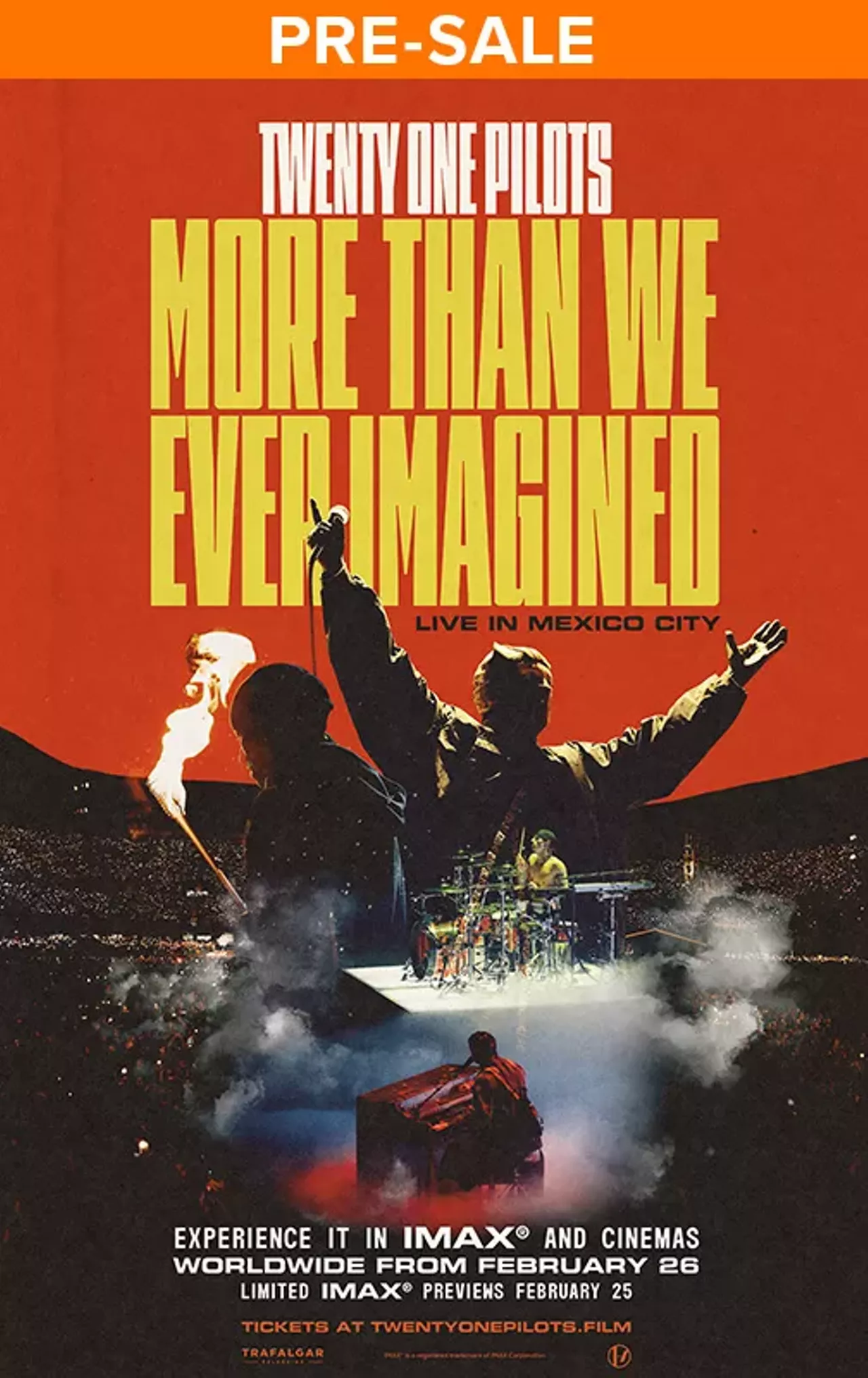 Experience the electrifying concert film capturing Twenty One Pilots at a career-defining moment: their monumental Mexico City headline show, performing in front of 65,000 fans at Estadio GNP Seguros during The Clancy World Tour. Set against the vibrant pulse of one of the world’s most iconic music capitals, the film blends cinematic high-energy performance footage with intimate, behind-the-scenes access, revealing the heart, humor, and humanity of the artists as they prepare for one of the biggest shows of their career. Viewers follow the band from their arrival in Mexico City to the stage, sharing in the preparation and anticipation that build as showtime approaches. Exclusive commentary from Tyler and Josh offer personal reflections on the journey that brought them to this historic stage and the deep connection with their fans who make it all possible.
