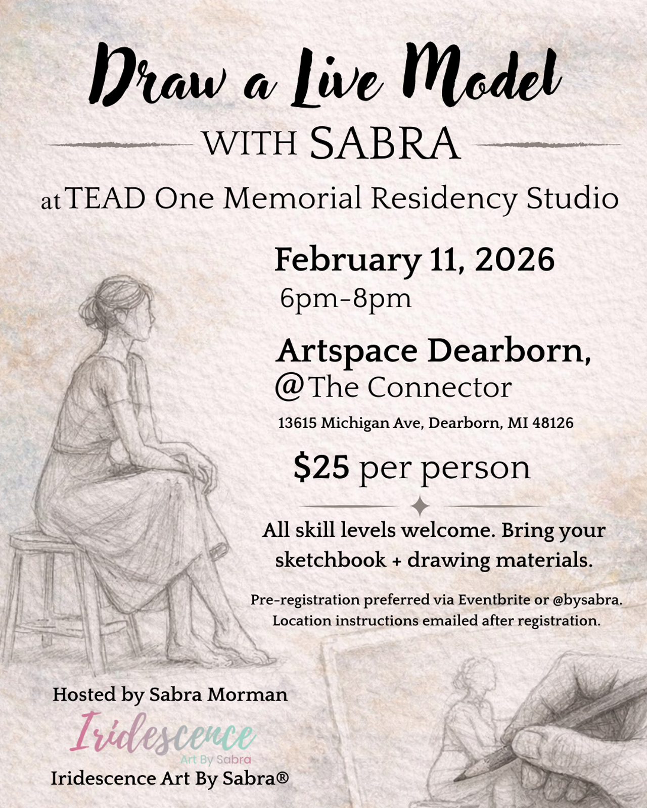 Come draw with Sabra and the crew at TEAD One Memorial Residency Studio